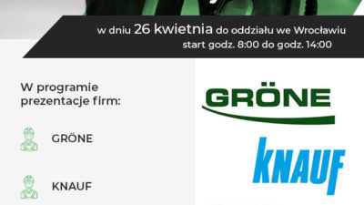 Zapraszamy na kolejne „Spotkanie z Profesjonalistami”, 17 kwietnia 9.00-16.00 do oddziału we Wrocławiu Podczas szkolenia odbędą się prezentacje firm: KABE
