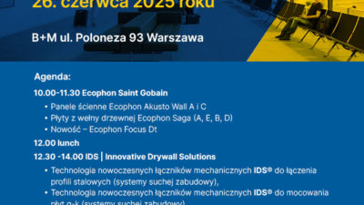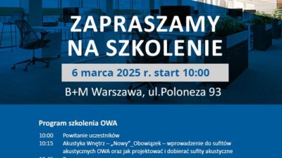 Zapraszamy wszystkich chętnych na szkolenie Knauf Ceiling Solutions do oddziału B+M w Warszawie. 9 marca